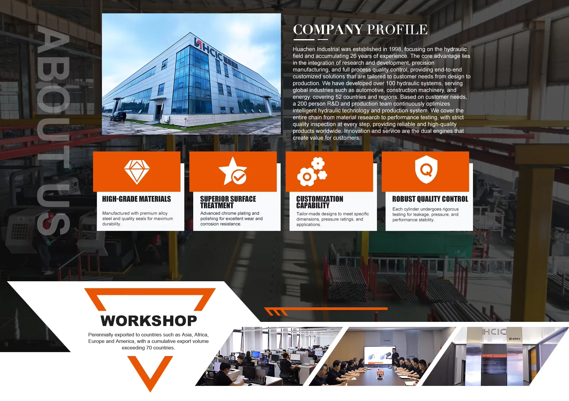 HCIC Hydraulic, hidrolik sistem tasarımı, üretimi, kurulumu, dönüşümü, devreye alınması ve hidrolik bileşenlerin marka satışlarında uzmanlaşmış profesyonel bir hidrolik üreticisidir. Teknik hizmetler sunuyoruz ve müşterilerimize en zorlu gereksinimleri karşılayan emniyetli ve güvenilir ürünler sunmaya kendimizi adadık. HCIC mühendislik ekibi, uygulamalarını anlamak için müşterilerle yakın işbirliği içinde çalışır. HCIC Hydraulics, bir dizi kanıtlanmış tasarım yöntemi ve gelişmiş üretim ekipmanını rakipsiz mühendislik ve üretim deneyimiyle birleştirerek, kritik uygulamalar için benzersiz müşteri hizmetleriyle desteklenen emniyetli ve güvenilir hidrolik silindirler geliştirir. Son teknolojiye sahip bir üretim tesisinde hidrolik silindirler tasarlıyor, üretiyor ve üretiyoruz ve müşterilerimize en yüksek kalitede ürünler sağlamak için ISO 9001-2015 sertifikalı kalite yönetim sistemimize bağlı kalıyoruz.