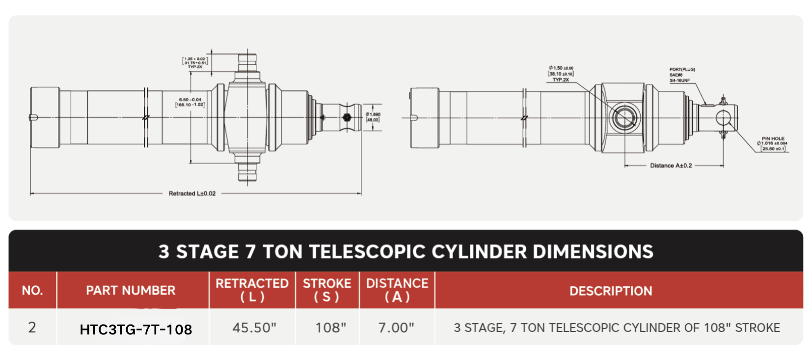 "HTC3TG-7T-108", 3 Kademeli, 7 Tonluk 108" Stroklu Teleskopik Silindirler